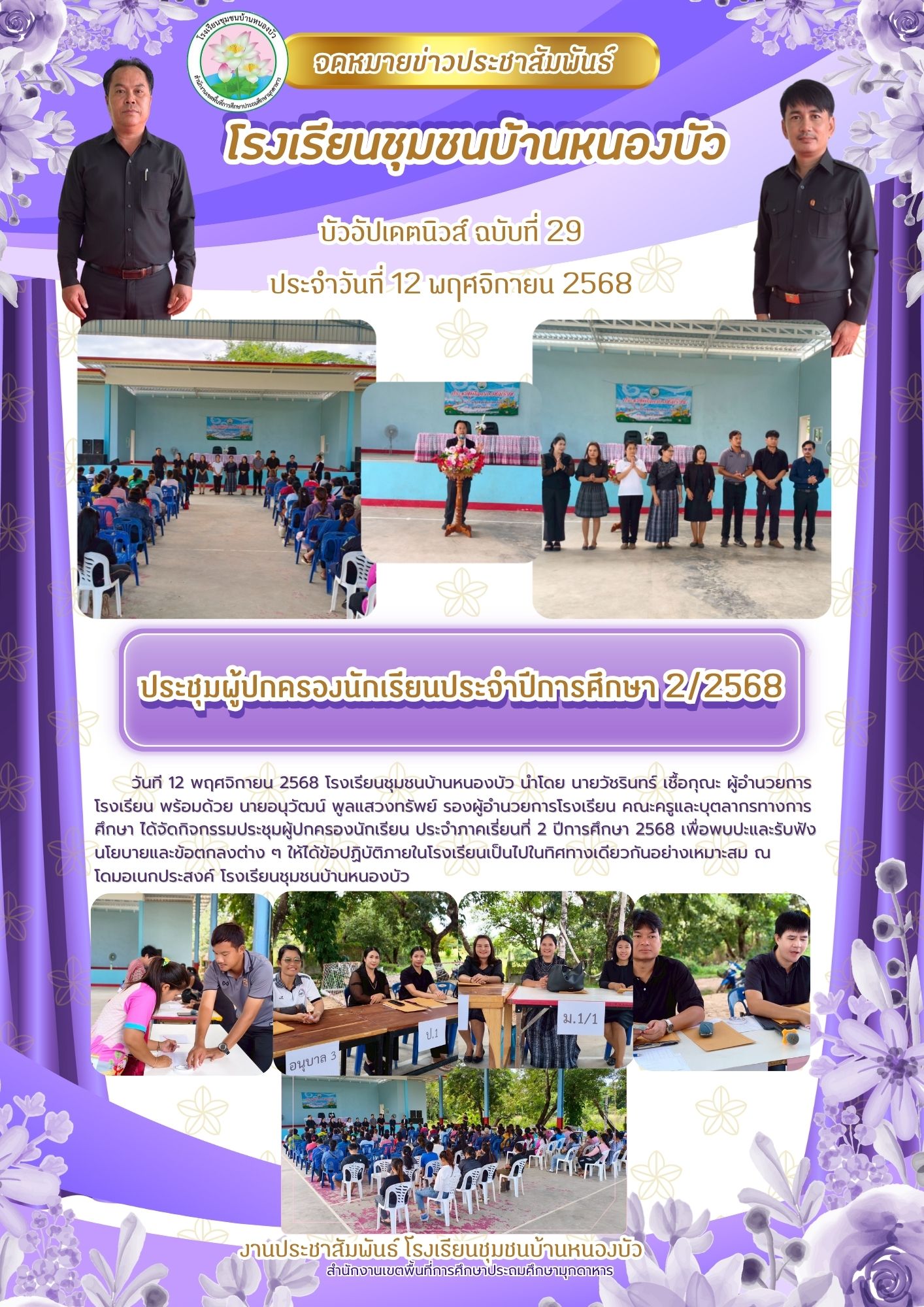 รอบรั้ว ชุมชนบ้านหนองบัว ประชุมผู้ปกครองนักเรียน ภาคเรียนที่ 2 ประจำปีการศึกษา 2568 admin 12 พฤศจิกายน 202517 พฤศจิกายน 2025 วันที่ 12 พฤศจิกายน 2568 โรงเรียนชุมชนบ้านหนองบัว จัดกิจกรรมประชุมผู้ปกครองนักเรียน ภาคเรียนที่ 2 ประจำปีการศึกษา 2568 และจ่ายเงินค่าอุปกรณ์การเรียนและเครื่องแบบนักเรียน(เพิ่มเติม) ณ อาคารโดม ฝ่ายมัธยมศึกษา