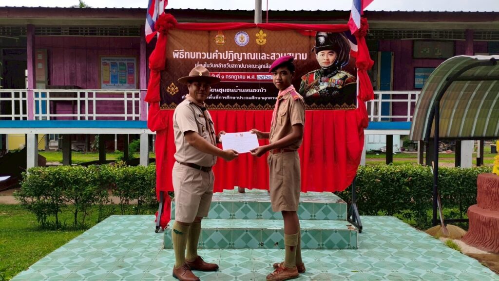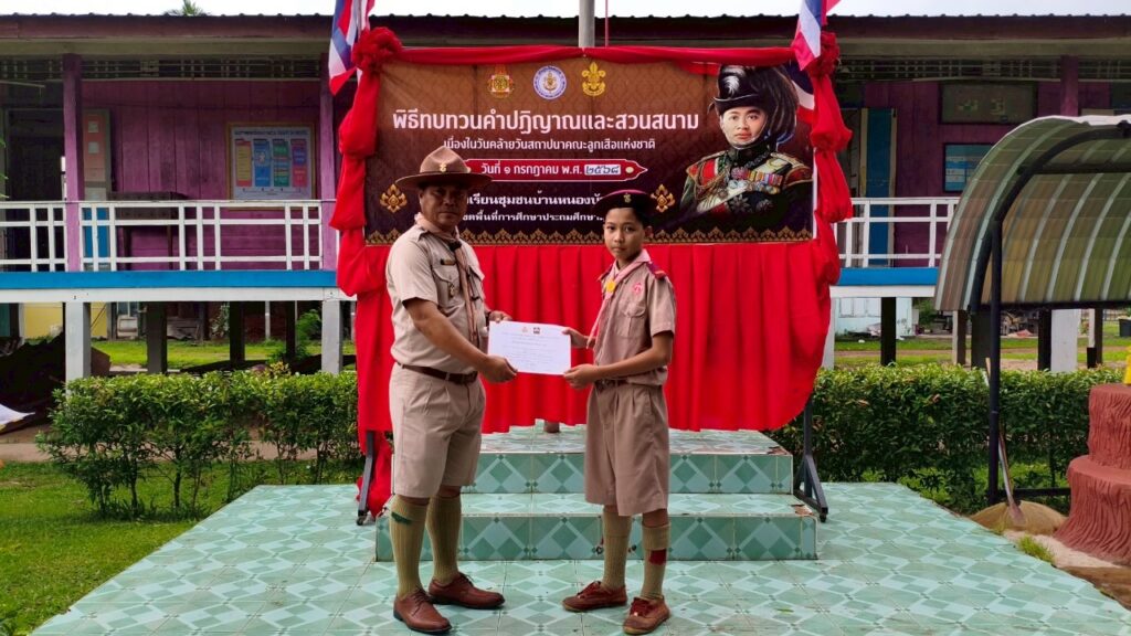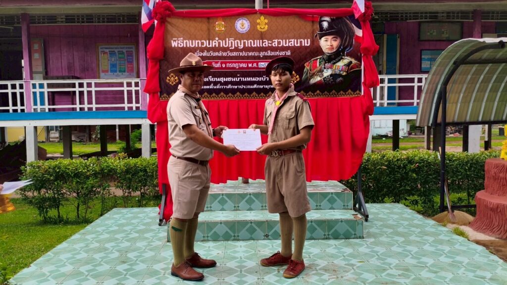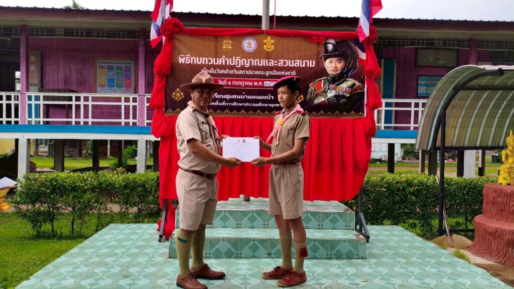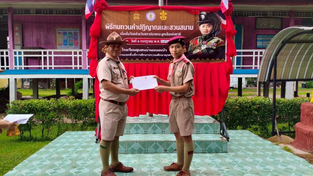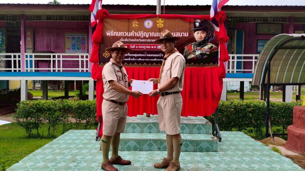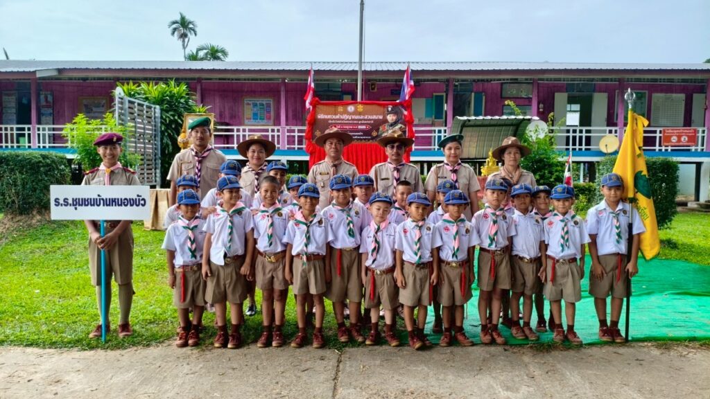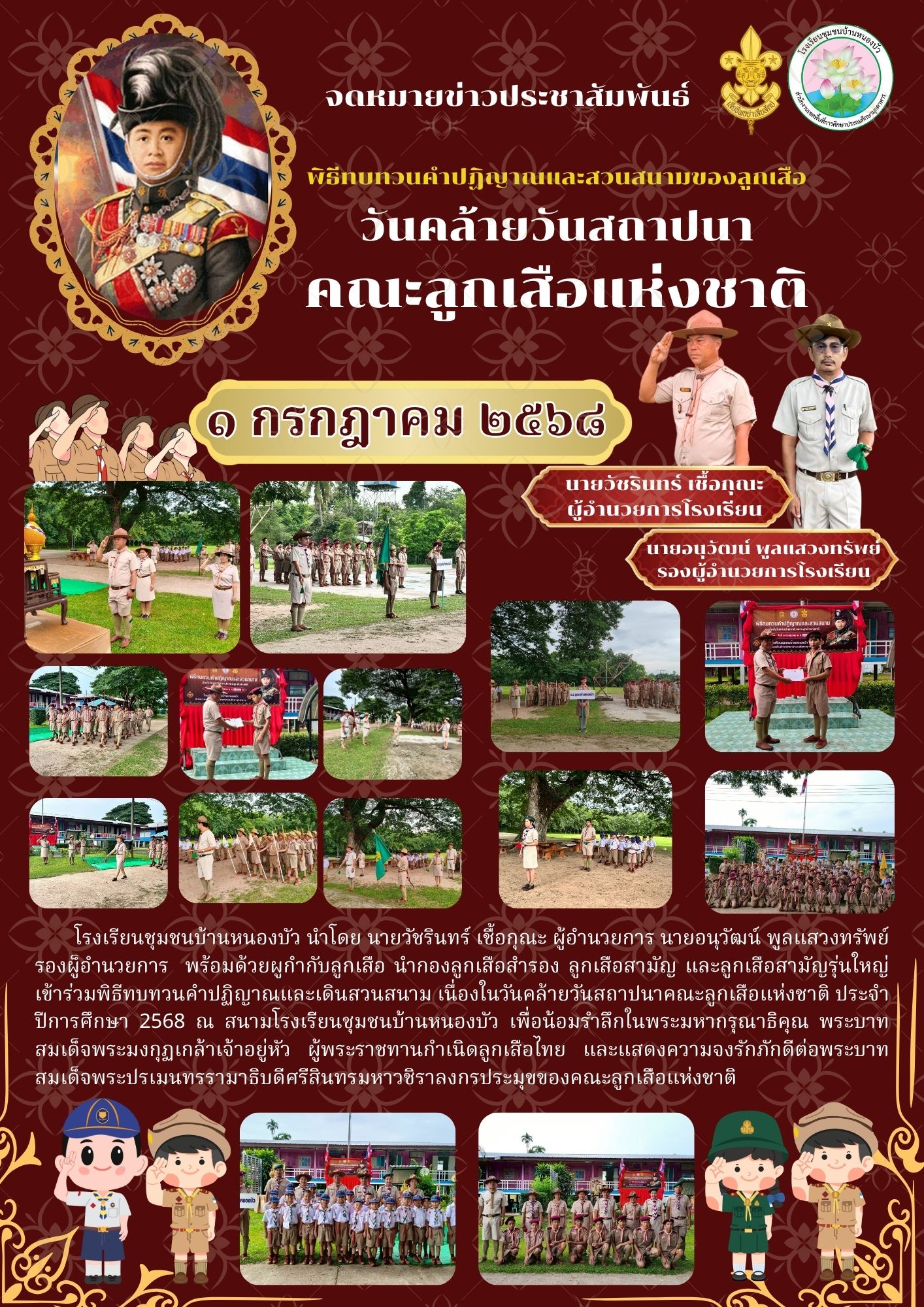 วันอังคารที่ 1 กรกฎาคม 2568 โรงเรียนชุมชนบ้านหนองบัว นำโดย นายวัชรินทร์ เชื้อกุณะ ผู้อำนวยการ นายอนุวัฒน์ พูลแสวงทรัพย์ รองผู้อำนวยการ พร้อมด้วยผู้กำกับลูกเสือ นำกองลูกเสือสำรอง ลูกเสือสามัญ และลูกเสือสามัญรุ่นใหญ่ เข้าร่วมพิธีทบทวนคำปฏิญาณและเดินสวนสนาม เนื่องในวันคล้ายวันสถาปนาคณะลูกเสือแห่งชาติ ประจำปีการศึกษา 2568 ณ สนามโรงเรียนชุมชนบ้านหนองบัว เพื่อน้อมรำลึกในพระมหากรุณาธิคุณ พระบาทสมเด็จพระมงกุฏเกล้าเจ้าอยู่หัว ผู้พระราชทานกำเนิดลูกเสือไทย และแสดงความจงรักภักดีต่อพระบาทสมเด็จพระปรเมนทรรามาธิบดีศรีสินทรมหาวชิราลงกรประมุขของคณะลูกเสือแห่งชาติ