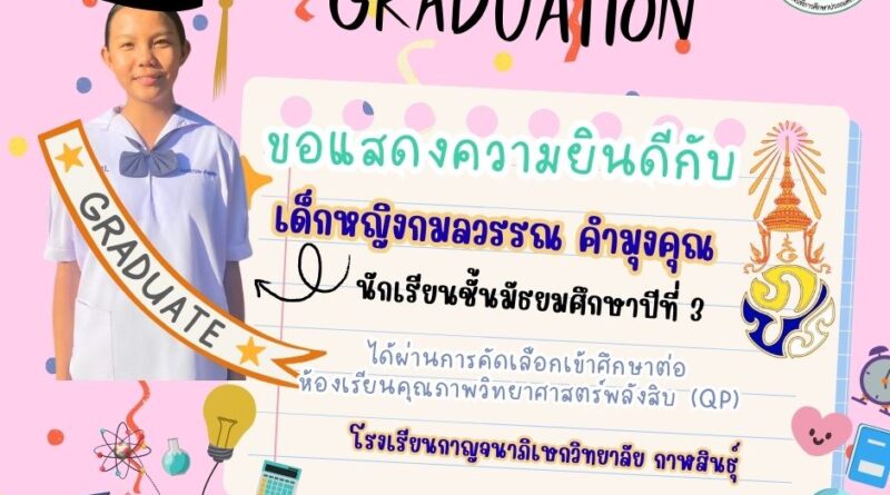ขอแสดงความยินดีกับนักเรียน ที่ผ่านการคัดเลือกเข้าศึกษาต่อ ห้องเรียนคุณภาพวิทยาศาสตร์พลังสิบ (QP) โรงเรียนกาญจนาภิเษกวิทยาลัย กาฬสินธุ์