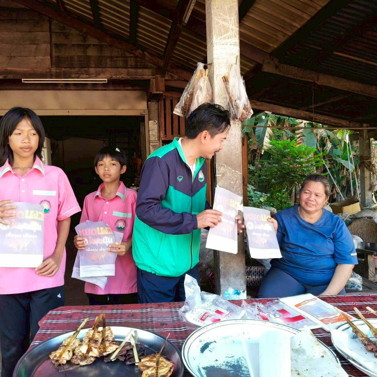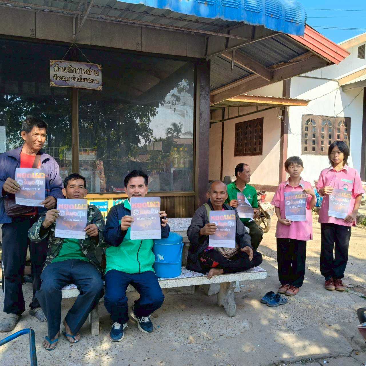 วันที่ 6 กุมภาพันธ์ เวลา 13.00 น. โรงเรียนชุมชนบ้านหนองบัว จัดกิจกรรมดำเนินการรณรงค์ประชาสัมพันธ์ (Kick off) การป้องกันและแก้ไขปัญหาไฟป่า หมอกควันและฝุ่นละอองขนาดเล็ก (PM2.5)กิจกรรมสร้างความตระหนักรู้ให้กับประชาชน ในการห้ามเผา โดยการเคาะประตูบ้าน “หยุดเผา หยุดฝุ่น เพื่อคุณ เพื่อเรา” ทำให้เกิดการรับรู้ถึงความสำคัญของการห้ามเผาในทุกครัวเรือน
